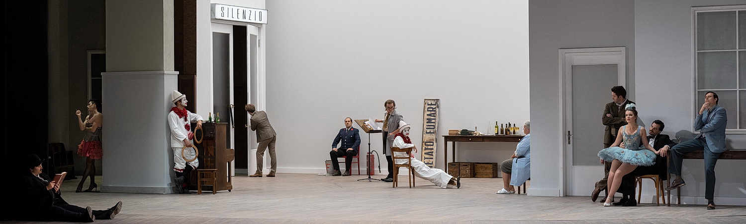 Dass diese subjektiv schnell verfliegen, dafür sorgt Christoph Loy, der die Geschichte inszeniert, die wieder im Theatermilieu spielt, wodurch Erinnerungen an Leoncavallos großen Erfolg I Pagliacci wach werden. Der Regisseur, der am Theater an der Wien schon mehrfach inszeniert hat, ist ein wahrer Könner und zeigt, wie schon bei seiner rundumgelungenen Così fan tutte von Mozart bei den Salzburger Festspielen letzten Sommer, echte, glaubhafte Charaktere und zwar nicht nur bei den Hauptakteuren, sondern bis in die kleinste Rolle. Mit großem, psychologischem Gespür vermag er mit exzellenter Personenführung die innersten Gefühle der Protagonisten meisterlich darzustellen und ein intensives, sehr berührendes Kammerspiel zu zeigen. Das alles geschieht in Raimund Orfeo Voigts kühlem, weißem Bühnenbild, das als Drehbühne die Hinterbühne eines Theaters, aber auch Zazàs Garderobe und Liebesnest zeigt.