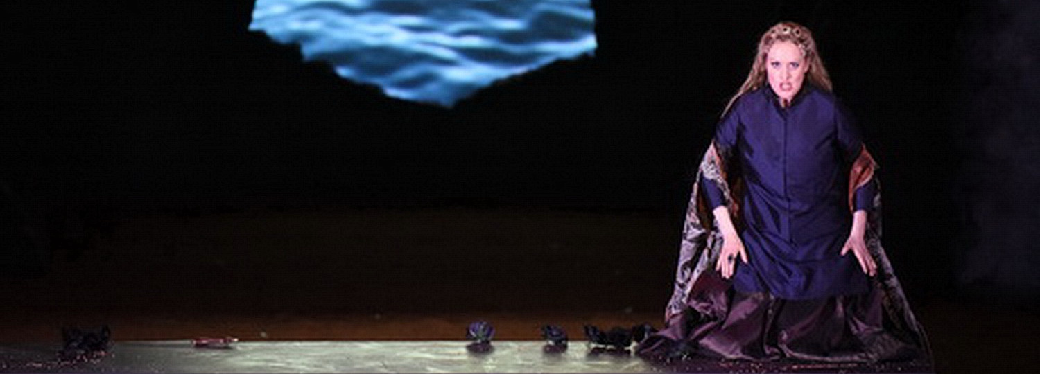 Ein Lieto fine hat – keine Überraschung – in der Sicht Laufenbergs keine Chance. Drastische Abweichungen vom Libretto sind bei Idomeneo ohnehin keine Seltenheit. So ist in Peter Konwitschnys Heidelberger Inszenierung im vergangenen Jahr am Ende der Theaterboden mit den Leichen aller Protagonisten übersäht. In Wiesbaden stirbt Elettra, sich den Dolch gebend, einen effektvollen Bühnentod, was zwar im Libretto angedeutet, aber üblicherweise nicht ausgespielt wird. Rasselnd fährt der Altar mit ihrer Gestalt in die Tiefe. Selbst Idomeneo verliert die letzte Contenance. Nachdem Idamante das Tod verheißende Ungeheuer vernichtet und sich bereit erklärt hat, Idomeneos Opferlamm zu sein, ist dieser nicht nur willens, das zu akzeptieren. Bewaffnet mit einem Dolch, schickt der Herrscher sich persönlich an, die Tat mit den eigenen Händen zu vollziehen, ehe die Stimme des Orakels, mächtig interpretiert von Young Doo Park, interveniert.
