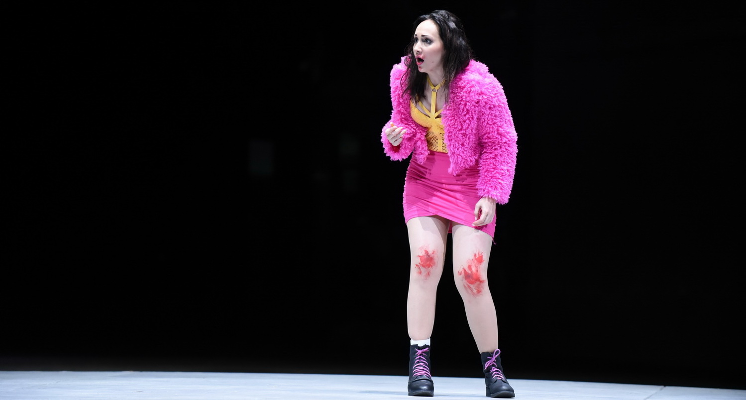 Kaum ist das Licht im Auditorium erloschen, betritt Hausherr Uwe Eric Laufenberg die Bühne. Regisseur Bernd Mottl und Cristina Pasaroiu, die Protagonistin des Abends, lassen ansagen, wenn Letztere das Bein nachziehe, hänge das nicht mit der Inszenierung zusammen. Rasch ersetzt Hochachtung die im Publikum der ausverkauften Vorstellung zunächst aufkommende Heiterkeit, als es erfährt, die Sopranistin habe sich zu Probenbeginn den Fuß gebrochen. Der Bruch sei von Wiesbadener Spezialisten genagelt worden. Der herzliche Applaus gilt gleichermaßen der couragierten Sängerdarstellerin wie den anwesenden Ärzten.