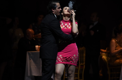 Cristina Pasaroiu ist Manon. Das Pensionatsgänschen, bald darauf den verliebten Backfisch, später das sich prostituierende Luxusgeschöpf, schließlich die Todbereite beglaubigt Pasaroiu stimmlich wie darstellerisch jeweils passgenau fokussiert. Stilsicher spannt sie Bögen, die von berückenden Piani bis zu emotional packenden Ausbrüchen reichen. Die virtuos, doch ohne jede Gefallsucht vorgetragenen Koloraturen fügen sich wie selbstverständlich ins Rollenporträt. Ioan Hotea als Des Grieux bewegt sich elegant und zugleich leidenschaftlich durch die hohen Lagen seiner Partie. Um sich dorthin aufzuschwingen, vernachlässigt er die Legatokultur. Der Lescaut von Christopher Bolduc ist ein wenig eng geführt. Florian Kontschak weiß Des Grieux‘ Vater mit autoritärem Bass Geltung zu verschaffen. Erik Biegel als Guillot-Morfontaine formiert mit Shira Patchornik als Poussette, Stella An als Javotte und Silvia Hauer als Rosette eine stets aufgekratzte Spaßtruppe.
