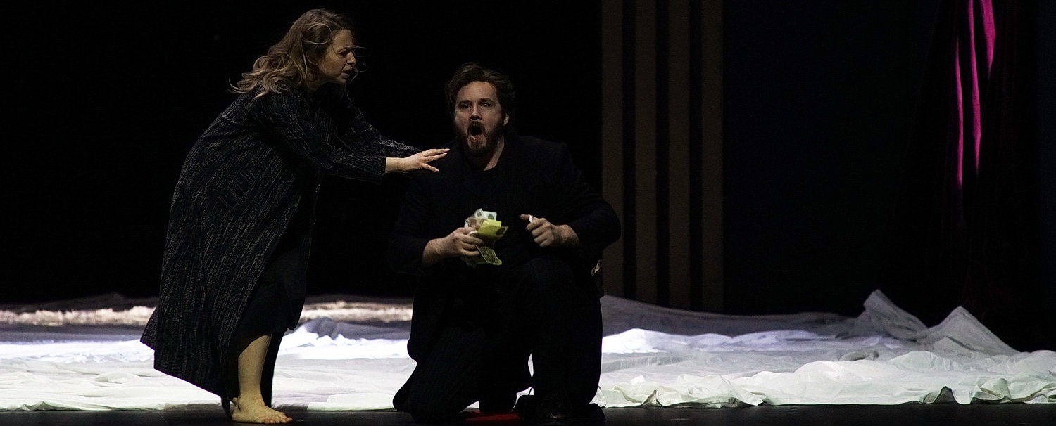 Für die russische Sopra­nistin Elena Bezgodkova, in verschie­denen Tschai­kowski-Rollen behei­matet, ist die Partie der Enkelin so etwas wie ein Heimspiel. Sie geht in ihr mit ihrem höhen­si­cheren und glocken­hellen Sopran und einem Spiel, das bis zur Selbst­aufgabe reicht, förmlich auf. Wiesbaden verfügt mit ihr über eine Lisa, die jedes Ohr erreicht und erst recht jedes Herz erweicht. Vor allem im Newa-Bild, dieser Explosion an wider­strei­tenden Gefühlen. Anfänglich wähnt sie sich mit Hermann vereint. Vergessen sind die Qualen und Tränen/​O mein Liebster, Ersehnter. Dann aber verraten und verschmäht. So ist es wahr: mit einem Verbrecher habe ich mein Schicksal verbunden. Viel stärker kann eine Stimme nicht verlöschen.