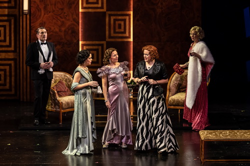 Aus der großen Zahl der zu besetzenden Rollen seien vor allem Mary Dunleavy als höhensichere, die Party veranstaltende Hausherrin Millicent Jordan hervorzuheben. Mit weichem Bariton fällt Stephen Powell als ihr herzkranker Gatte Oliver auf. Gemma Summerfield ist deren fein timbrierte Tochter. Brenda Harris spielt die exaltierte, alle vereinnahmende Carlotta Vance. Craig Irwin ist der skrupellose Finanzhai Dan Packard. Susannah Biller ist dessen zickige, dümmliche, leichtstimmige, aber köstlich agierende Gattin Kitty, die ein Verhältnis mit Dr. Talbot hat,dargestellt von Brett Polegato, der allerdings alles andere als ein Draufgänger ist und nur solide singt. Blass ist auch Sharon Carty als seine Frau.