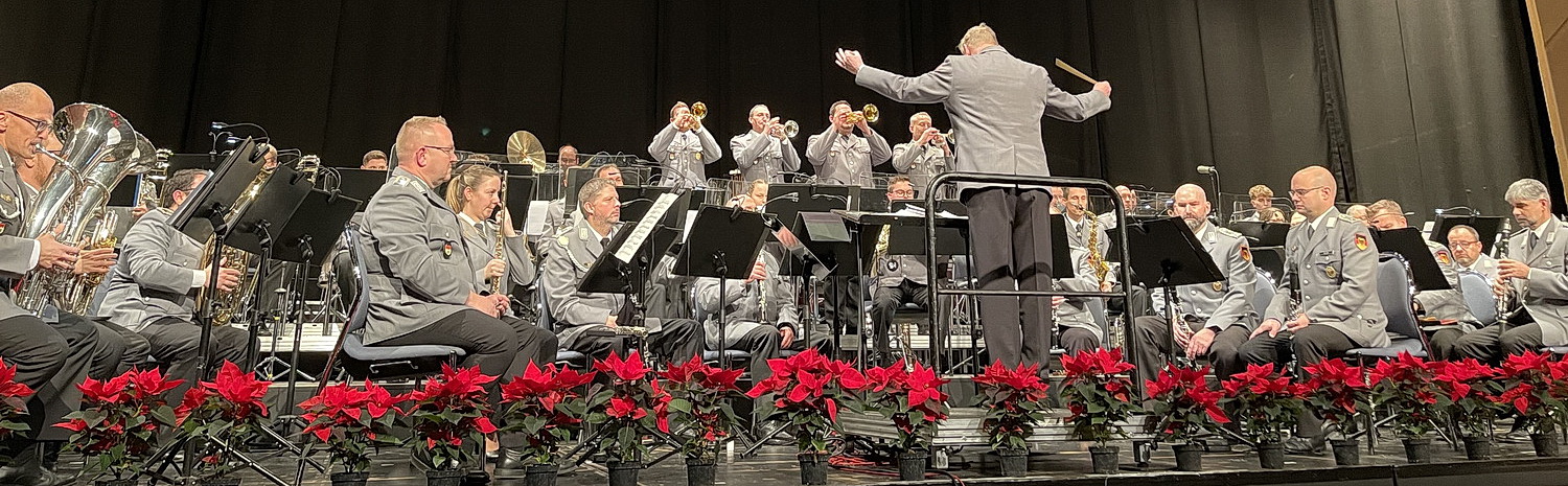 Seit vielen Jahren spielt das Heeresmusikkorps Veitshöchheim traditionell am dritten Adventssonntag ein Benefizkonzert für die Senioren im Congress Centrum Würzburg. Zwei Jahre konnte das Konzert wegen der Corona-Pandemie nicht stattfinden. Nun ist es endlich wieder soweit, im mit über 1.000 Menschen vollem großen Saal des Congress Centrums bringt das Heeresmusikkorps Veitshöchheim unter der Leitung von Roland Kahle festlichen Glanz und zeigte ein breites Potpourri seines Könnens. Die Musiker sind in der Zeit der Zwangspause nicht untätig gewesen. Da alle Militärmusiker in ihrer Zweitverwendung Sanitätssoldaten sind, waren viele von ihnen im Sanitätsdienst der Bundeswehr oder auch in Einrichtungen des zivilen Gesundheitssystems, in Gesundheitsämtern, in Impfzentren oder bei der Kontaktnachverfolgung eingesetzt und haben damit einen nicht unwesentlichen Beitrag zur Bewältigung der Pandemie und damit einen Dienst an der Gesellschaft geleistet. Seit vielen Jahren unterstützt das Heeresmusikkorps Veitshöchheim mit seinen Benefizkonzerten die Seniorenvertretung der Stadt Würzburg, die mit dem Erlös der Konzerte verschiedene Projekte zugunsten von Senioren unterstützt. In diesem Jahr kam noch die interkulturelle Frauenarbeit des Sozialreferates der Stadt Würzburg hinzu, die mit ihrem Projekt „Blickpunkt“ die Garderobenarbeit aktiv unterstützte.