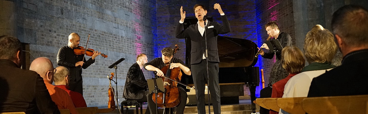 Denn in der akustisch vorteilhaften, leicht mystisch ausgeleuchteten Kirche sind sechs exzellente Musiker zu erleben bei packendem, bestens aufeinander abgestimmten Spiel. Einmal für Spark fünf Könner auf ihren Instrumenten, der jazzig agierende Pianist Christian Fritz, Stefan Balazsovics mit Violine und Viola, der ausgezeichnete, temperamentvolle Cellist Victor Plumettaz und die beiden Flöten-Virtuosen Daniel Koschitzki, auch mit Melodica imponierend, und Andrea Ritter, und beide bedienen souverän und brillant unzählige, verschiedenste Arten von Flöten, von der Piccolo-Flöte über die traditionelle Blockflöte bis hin zur riesigen Bass-Flöte, wobei sie die Instrumente auch innerhalb der einzelnen Stücke geschwind wechseln. Die Arrangements stammen meist von ihnen. Noch gesteigert wird die Wirkung ihrer Darbietungen durch den deutsch-rumänischen Countertenor Valer Sabadus, denn sein variabler, großer Countertenor, stets weich und rund, mit weiten, glänzenden Höhen, bester Diktion und plastischer Textgestaltung, fasziniert ebenso durch differenzierten Ausdruck. Die Band fesselt dabei durch vielseitige Rhythmik bei oft wahnwitziger Geschwindigkeit und expressive Wechsel.