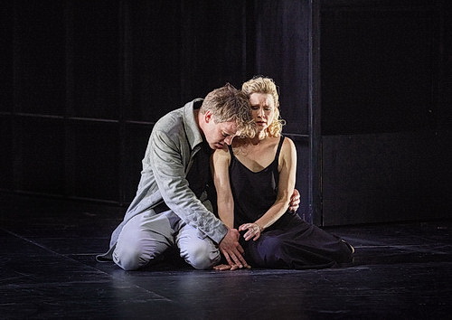 In der Blauen Halle des Mainfranken Theaters Würzburg betont Regisseurin Agnessa Netjodov bei ihrer Inszenierung die emotionsgeladenen Konflikte stark. Gefühle werden erträumt, herbeigesehnt, enttäuscht, zu spät erkannt oder missdeutet. Für diese „brodelnden“ Emotionen und gefühlsbeladenen Gedanken hat sich die Regie einen eigenen Raum über der Spielfläche erdacht und die Handlung im Grund von historisch-gesellschaftlichen Bezügen befreit. Das überzeugt nicht immer. Aber eines stimmt: Traum und Realität prallen in dieser Oper schmerzhaft aufeinander. Die Spaltung in eine Welt des Gefühls, der Emotionen und des Alltagslebens drückt sich aus in zwei Orten auf der Bühne, in einem weißen, etwas erhöhten, leeren Raum, einer Art Guckkasten, und eine untere, weitgehend dunkle Ebene, wo etwa das Landgut der Larina oder das städtische Palais des Gremin angesiedelt sind. Leider ist das, was das Bühnenbild von Volker Thiele ausdrücken will, etwas zu abstrahiert sachlich und schematisch geraten, vor allem bei der langen Festtafel des auf dem Boden sitzenden Landvolks. Da fragt man sich dann auch, warum der angeblich alte Fürst Gremin beim Ball an einem schäbigen Tisch sitzt und in seinem hellen, sportlichen Outfit eher an einen durchtrainierten Best Ager erinnert, während seine Gattin Tatjana in einem langen, silbrigen Glitzer-Fummel auftritt unter Leuten, die eher schlicht in schwarzen Mänteln daherkommen. Die Kostüme von Nicole von Graevenitz zeigen einerseits für die Landbevölkerung meist saubere, einheitliche Kleidung in Schwarz-Weiß, in der Stadt aber wird das Volk zur einer hin- und her wogenden schwarzen Masse. Alle Personen scheinen äußerlich einem unbestimmten Heute zu entstammen. Anfangs wird bei Tatjana ihre mädchenhafte Unschuld durch ein weißes Hemd, einen hellen Trägerrock und einen hellrosafarbenen Mantel unterstrichen, während Olga in hellem, langem Sommerkleid samt buntem Schal die etwas selbstbewusstere der Töchter der Larina darstellt; die trägt ab und zu Rot, nur die gemütliche Kinderfrau Njanja ist bäuerlich gekleidet. Innere Seelenzustände und Wirklichkeit stoßen in dieser Inszenierung auch räumlich aufeinander, und auch sonst werden Zusammenhänge eher stilisiert angedeutet als realistisch vermittelt. Das verwirrt oft; manchmal wirken die Szenen nur wie symbolisch bebildert, etwa beim Beeren-Lesen auf dem Land oder beim Tanz in kahl-nüchterner Umgebung in der Stadt, wo Tatjanas schicke Aufmachung gar nicht passt. Dagegen aber gelingt die Personenführung sehr lebendig; übertrieben jedoch ist der wild ausufernde Tanz von Olga und Onegin und dessen scheinbar irres Gebaren mit Lachen und Hin- und Herlaufen vor dem Duell mit Lenski.