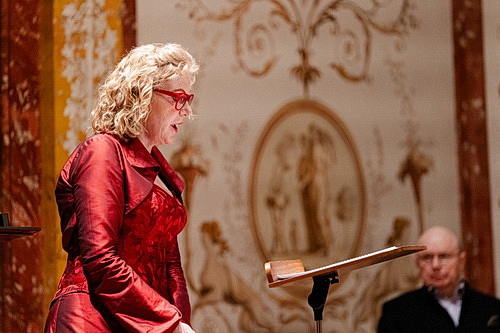 Das Festival Lied Würzburg bringt weiterhin sehr Interessantes, dazu unvorhergesehene Ereignisse. Anne Schwanewilms, gefeierte Strauss-Interpretin weltweit, hat mit Pianist Manuel Lange und Schauspieler Wolf-Dietrich Rammler ein sehr nahegehendes Programm zusammengestellt mit den Proses lyriques von Claude Débussy, Sieben frühe Lieder von Alban Berg und Sieben Lieder für Frauenstimme opus 94 des beim Konzert im Toscanasaal der Würzburger Residenz anwesenden Komponisten Stefan Heucke, geboren 1959. Letzterer hat seine Lieder nach Gedichten von Hilde Domin eigens für Schwanewilms in Musik gesetzt, die Sängerin ihrerseits fühlt sich von Domins Gedichten stark angesprochen, wie es in einer kurzen Einführung heißt. Ein ungemein anspruchsvolles und tiefgehendes Programm fordert die Zuhörer im zahlreich erschienenen Publikum. Viele junge Gesichter sieht man, auch die Schüler des Meisterkurses, den Schwanewilms gemeinsam mit ihrem brillanten Begleiter Manuel Lange im Rahmen des Festivals gibt.
