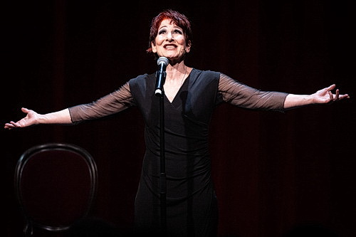 Von Anfang an ist dem Zuschauer klar, welch immense Rolle Schöller sich da auf den Leib geschrieben hat. Aber sie wird ihr mit jeder Faser ihres Körpers gerecht. Der Piaf sehr ähnlich von Chefmaskenbildner Wolfgang Weber geschminkt, dazu ist sie annähernd klein wie diese, wie sie selbst in einem der Dialoge mitteilt. Die Mezzosopranistin, die auch gerne im Bereich der leichteren Muse tätig ist, setzt ihre Stimme sehr gekonnt ein, ohne zu einem Plagiat der Piaf zu werden. Sie ist reif für die Piaf, mischt Brust- und Kopfstimme gekonnt bis in die höheren Register, nur sehr selten ahnt man die Opernsängerin dahinter. Sie kommt als Mezzo mehr von der Tiefe her, singt sehr obertonreich und kommt damit der sehr hellen Stimme der Piaf wirklich nahe. Auch Schöller verfügt über große Kraft, kann ihr ganzes Wesen in den Ton legen, ihre Stimme sehr frei strömen lassen und erreicht ihre Zuhörer damit tief im Innersten. Ihr Französisch mit nur sehr leichtem deutschen Akzent ist absolut passend und sehr gut verständlich. Bei manchen Liedern, so bei dem berühmten Padam, padam, zeigt sie sogar noch mehr Energie und ebenso unbedingten Ausdruckswillen wie ihr Vorbild, auch durch die hervorragende Begleitung am Stutzflügel durch Atkin. Er gibt ihr den Klangteppich, auf dem sie agieren kann, lockt sie und führt sie hinein in die Höhen und Tiefen, sie, die man „die Hausfrau der Hölle und Priesterin der Liebe“ nannte, ersetzt ein ganzes Orchester mit Leichtigkeit.