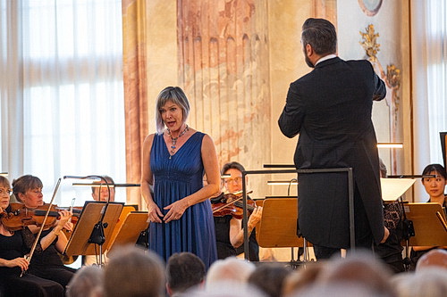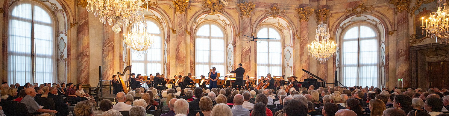 Auch ein reines Mozartprogramm ist keineswegs langweilig und kann sein Publikum in die ausverkauften Säle der Würzburger Residenz locken. Mit dem voll packender Spielfreude geradezu überbordenden Ensemble Il Pomo d‘ Oro unter dem von innerer Energie getriebenen Chefdirigenten Maxim Emelyanychev entfaltet das auf historische Aufführungspraxis fixierte Orchester mit vorwiegend jungen Musikern eine unbändige Lust am Musizieren. Dabei ist durch die Schwüle im Kaisersaal immer wieder ein Nachstimmen der Instrumente nötig; das ficht nicht an. Und der Dirigent erweist sich mit seinen raumgreifenden beschwörenden Handbewegungen als perfektionistischer Dompteur, stets gute Laune vermittelnd.