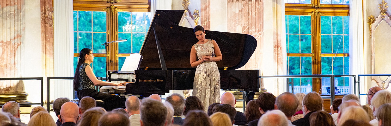 Nach allen innovativen Programm-Bekundungen um das Motto des diesjährigen Würzburger Mozartfests und sein etwas irreführendes, provokantes Thema „Freigeist Mozart“ tut es richtig gut, einmal einen „konventionellen“ Liederabend erleben zu dürfen, noch dazu in einem bestens besuchten Kaisersaal der Residenz, mit einer wunderbaren Sängerin, der Sopranistin Regula Mühlemann, immerhin mehrfach ausgezeichnet, zuletzt mit dem Opus-Klassik 2020. Sie bringt einen Strauß Frühlingslieder von Schubert und Schumann mit, erntet aber den meisten Beifall bei bravourösen Mozart-Arien und bei der danach fälligen, mitreißenden Zugabe, dem Frühlingsstimmenwalzer von Johann Strauß. Solche Begeisterung aber löst nicht unbedingt ihre Begleiterin am Klavier, Tatiana Korsunskaya, aus, Dozentin für Kammermusik, Liedbegleitung und Korrepetition an den Hochschulen Luzern und Bern. Sie beginnt zwar träumerisch verspielt und schnell bei Schuberts Im Frühling, aber in der Folge gerät ihr Anschlag oft zu stark, auch zu schematisch, hat ihre großen Momente in wirbelnden Kaskaden bei Versunken, in aufgewühlten Betonungen wie in Rastlose Liebe, aber insgesamt klingt vieles zu kraftvoll, zu trocken; es fehlen fein zurückhaltende Töne, weichere Farben, auch ein einhaltendes Ritardando, um die schwankenden Gefühle auszudrücken, und manches gerät, etwa bei Die Blume der Ergebung bei flüssigen Läufen fast etwas fahrig. Doch mit Fortschreiten des Abends kann sie, vor allem bei Mozart, feinen Glanz und Duftiges, Perlendes entwickeln. So bildet ihr Spiel dennoch die Basis für einen faszinierenden Liederabend.