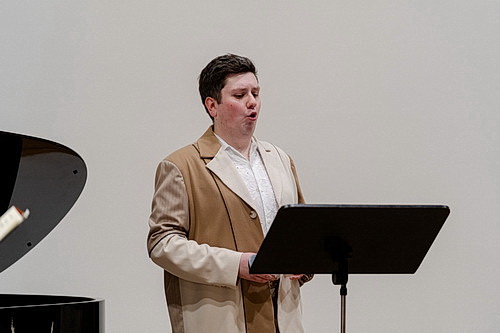 Da betritt doch ein Dandy den Saal des wohlgefüllten Burkardushauses in Würzburg beim Festival Lied! Die Bühnen des Festivals sind immer wieder für Überraschungen gut, aber eher im stimmlichen Sinne. Nicht nur arrivierte, international anerkannte Künstler betreten die Bretter der unterschiedlichen Veranstaltungsorte, auch überraschende neue Stimmen von stets überragender Qualität werden von Intendant Alexander Fleischer ausgesucht.