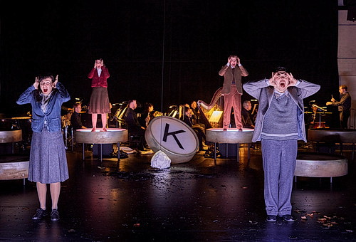 Zimmer­manns Oper lebt nicht von einer Handlung, sondern ist eigentlich inneres Theater. Das meiste, diese innere Dramatik, spielt sich in der Musik ab. Die ist manchmal rasend schnell, dann wieder äußerst langsam, auch fein leise im Streich­quintett, dann wieder dishar­mo­nisch, chaotisch; sie zitiert auch Melodi­sches, etwa Barockes verfremdet, dann ist sie hämmernd, begleitet so die innere Zerris­senheit der Geschwister, ihre Ängste, und am Schluss, zum lärmigen Zitat eines Nazi-Marsches, erklingt dann wie von ferne, vom Band, das Glocken­geläut, das Jahr für Jahr an die Vernichtung der Stadt und die vielen Tausend Todes­opfer erinnert, alles unter­füttert von Sprach­fetzen, Rufen, Schreien. Die Aufführung lebt von der exzel­lenten Leistung des kleinen Orchesters, mit Bläsern, Schlagzeug, Harfe, Strei­chern, unter der Leitung von Ulrich Cornelius Maier.