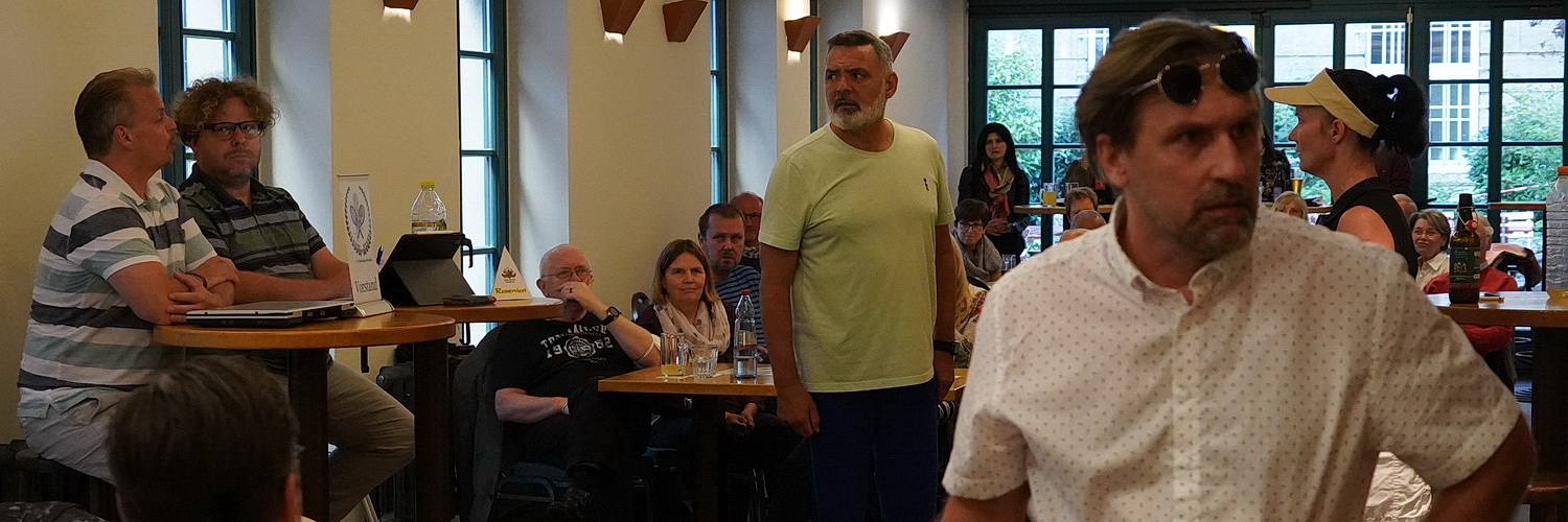 Dietmar Jacobs und Moritz Netenjakob sind längst erfolgreiche Autoren für Theater und Fernsehen, als sie mit Extrawurst vermutlich, zumindest aus heutiger Sicht, den Coup ihres Lebens landen. Seit der Uraufführung läuft das Stück landauf, landab auf öffentlichen und privaten Bühnen. Eine der besten, wenn nicht die beste, weil wunderbar authentische Inszenierung ist seit dem 2. Juli im Wuppertaler Brauhaus zu erleben. Ursprünglich als Open-Air-Veranstaltung angelegt, hat das Wuppertaler Ensemble die Möglichkeit, sich bei schlechtem Wetter in den so genannten Brausaal zurückzuziehen. Braukessel sucht man hier allerdings vergebens. Der schlauchartige Raum wirkt eher wie ein Seitenflügel der Gastronomie. Hier gelten nicht nur die weitaus harmloseren staatlichen Restriktionen für die Gastronomie statt die für die Kultur, sondern die Räumlichkeit ist auch wie geschaffen für die Mitgliederversammlung eines Tennisclubs. Links und rechts versammeln sich die Mitglieder vulgo das Publikum unter Neonröhren und Wandleuchtern, während der Vorstand in der Mitte an einem erhöhten Tisch Platz nimmt. Auch ohne Ansage wird man sich binnen weniger Minuten als Gast als vollwertiges Mitglied des Tennisclubs fühlen. Jacobs und Netenjakob haben ihr Brennglas auf die Gesellschaft zielgenau auf das Vereinsleben gesetzt. In diesem einzigartigen Mikrokosmos, der für die Deutschen so unentbehrlich zu sein scheint wie das tägliche Brot – und davon wurde ja im vergangenen Jahr auch privat viel gebacken – nimmt das Grauen seinen Lauf. Obwohl zunächst nichts darauf hindeutet. Die Tagesordnung ist routiniert und zackig abgearbeitet. Schließlich hat der wiedergewählte Vereinsvorstand alles minutiös vorbereitet, was die Mitglieder auch nicht anders erwarten. Sicher nicht unbeabsichtigt gibt es im Ensemble nur eine Frau, was neuerdings politisch vollkommen unkorrekt erscheint. Als die allerdings ihren Arm hebt und mit den Fingern schnippt, weiß jeder im Raum: Das noch unbekannte Drama nimmt seinen Lauf. Allein schon dieser Moment ist absolut großartig.