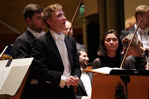 Wie in der damaligen Zeit en vogue schrieb Webern sein Opus 1 für großes Orchester. Dessen ungeachtet entpuppt sich an diesem Stück seine hohe Meisterschaft im Umgang mit der Polyphonie. Er beschränkt sich nämlich nicht auf gängige Variationen über das achttaktige Grundthema. Laut Partitur erklingt es anfangs 20mal erkennbar. Erst danach, nach rund zwei Dritteln des Werks, wird es allmählich aufgelöst, bis es ganz verschwindet. In den Variationen werden nicht wie üblich die Gestalt des Themas behandelt, sondern die Tonhöhen-Klassen. Im weiteren Verlauf kommen wie neue melodische Erfindungen Gegenthemen hinzu. Sie werden wichtiger als das Hauptthema und wandern durch die unterschiedlichsten Instrumente und Instrumentengruppen. Es handelt sich also um ein feines, vielschichtig durchstrukturiertes Werk. Um die komplexe Tonschöpfung durchsichtig und allgemeinverständlich zum Erklingen zu bringen, ist es zwingend notwendig, den großen Orchesterapparat dynamisch derart fein auszubalancieren, als handelte es sich hörbar um ein Kammerorchester. Davon ist an diesem Abend unter Hahn, der während des gesamten Konzerts verlässlich taktschlagend für korrekte Einsätze sorgt, nur an leisen Stellen etwas erlebbar. Wird es lauter als Mezzoforte, sind die differenzierten Strukturen akustisch glattgebügelt bis hin zum sinfonischen Bombast im dreifachen Tutti, bei dem sich das Blech und Schlagwerk mächtig ins Zeug legen dürfen. Ob solch eine Aufführungspraxis im Sinne des Komponisten ist? Jedenfalls wird die vordergründig schön-gefällige Haltung mit viel Beifall honoriert.