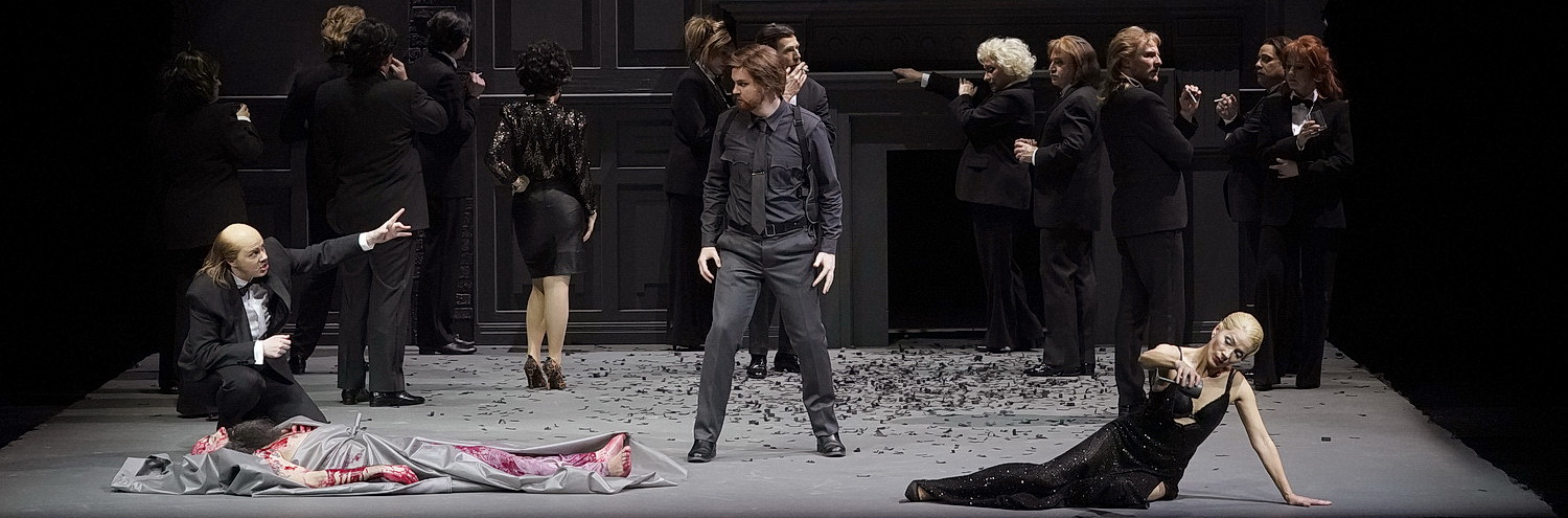 Vielleicht würden sich puristische Musikfreunde des ausgehenden Frühbarocks die Haare raufen, wenn sie die Töne hören, die aus dem Orchestergraben des Wuppertaler Opernhauses kommen. Ist das wirklich Claudio Monteverdi pur? Es geht um die Musik seiner letzten Oper L’incoronazione di Poppea– übersetzt: Die Krönung der Poppea – aus dem Jahr 1642. Fakt ist, dass davon keine Partitur erhalten ist. Es existieren aus dieser Zeit lediglich zwei Handschriften aus Neapel und Venedig, die der Urfassung nicht entsprechen. Auch existiert keine gültige Orchestrierung. Bearbeitungen gibt es genug aus dem letzten Jahrhundert, etwa der Versuch einer Originalfassung aus dem Jahr 1990 von René Jacobs. Ganz anders ging der letztes Jahr im Alter von 85 Jahren gestorbene belgische Komponist Philippe Boesmans mit der Thematik um. Er war Hauskomponist der Brüsseler Oper La Monnaie, für die er mehrere Opern schrieb. Dirigent Sylvain Cambreling führte zu seiner Zeit als Musikdirektor dort einige von ihnen auf und pflegt nach wie vor sein Oeuvre. Seine Werke stehen immer wieder auf Programmen einschlägiger Festivals. Die Zusammenarbeit mit Regisseur Luc Bondy ist bekannt. Von diesem Opernspezialisten erschien anno 2012 eine eigene Poppea-Version, die er mit Poppea e Nerone betitelte. Mit diesem Namen machte er deutlich, dass er bewusst eine Rekonstruktion des Originals mied. Für ihn handelte es sich vielmehr um – nach eigenen Worten – eine „restituition et orchestration“. Ein Orchester von 30 Musikern wird vorgesehen. Barocke Klänge kommen zwar vor, darüber hinaus aber auch zeitgenössische unter Verwendung etlicher moderner Instrumente. Eine große Palette an Tasten- und Schlaginstrumenten befinden sich darunter: Cembalo oder Orgelpositiv, Klavier, Celesta, Glockenspiel oder Harmonium und Synthesizer; Vibrafon, Marimbafon und Metallofone bestimmter und unbestimmter Tonhöhe wie Crotales und Tamtam. Damit nutzt er sehr viele moderne klangliche Möglichkeiten aus, darunter funkelnde und schillernde Klänge. Wenn dann auch noch die Oper auf den Zeitgeist gemünzt, im vorliegenden Fall in die Dekade der 1980-er Jahre transportiert wird, macht die Verwendung der aktuellen Partitur Boesmans durchaus Sinn. Für die stringente Inszenierung zeichnen Regisseur und Bühnenbildner Immo Karaman sowie Kostümbildner und Choreograf Fabian Posca verantwortlich.