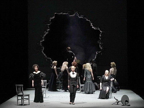 Im Mittelpunkt steht Neros Geliebte Poppea, der ihr unsterblich verfallen ist. Sie setzt alle ihr zur Verfügung stehenden Hebel in Bewegung, um an die Macht zu kommen. Ob bei ihr wahre Liebe mit im Spiel ist angesichts dieses Verehrers mit einer nicht gerade ansehnlichen Haarpracht à la Gildo Horn, Wampe und unattraktiver Kleidung? Auch alle anderen umgarnt sie mit viel Berechnung gekonnt, einzig, um zum Ziel zu kommen. Zu jedem Anlass trägt sie die jeweils richtigen schnieken Klamotten und bestrickt, falls nötig, mit ihren professionellen erotischen Mitteln. Alle Versuche, ihre Pläne zu vereiteln, scheitern. So wird Seneca zum Selbstmord verdonnert. Oder Ottone folgt Drusilla ins Exil, wo in dieser Inszenierung auch er das Leben verliert. Zwischen beiden Protagonisten herrscht aber schließlich kein Eitel, Freude, Sonnenschein, wenn sie beim traumhaft schön vorgetragenen Schlussduett Pur ti miro großen Abstand wahren und alle anderen Darsteller durch eine zerbombte Wand schleichen beziehungsweise davor liegen bleiben. Poppea hat zwar ihren Willen bekommen. Doch ein glückliches Leben sieht ganz anders aus.