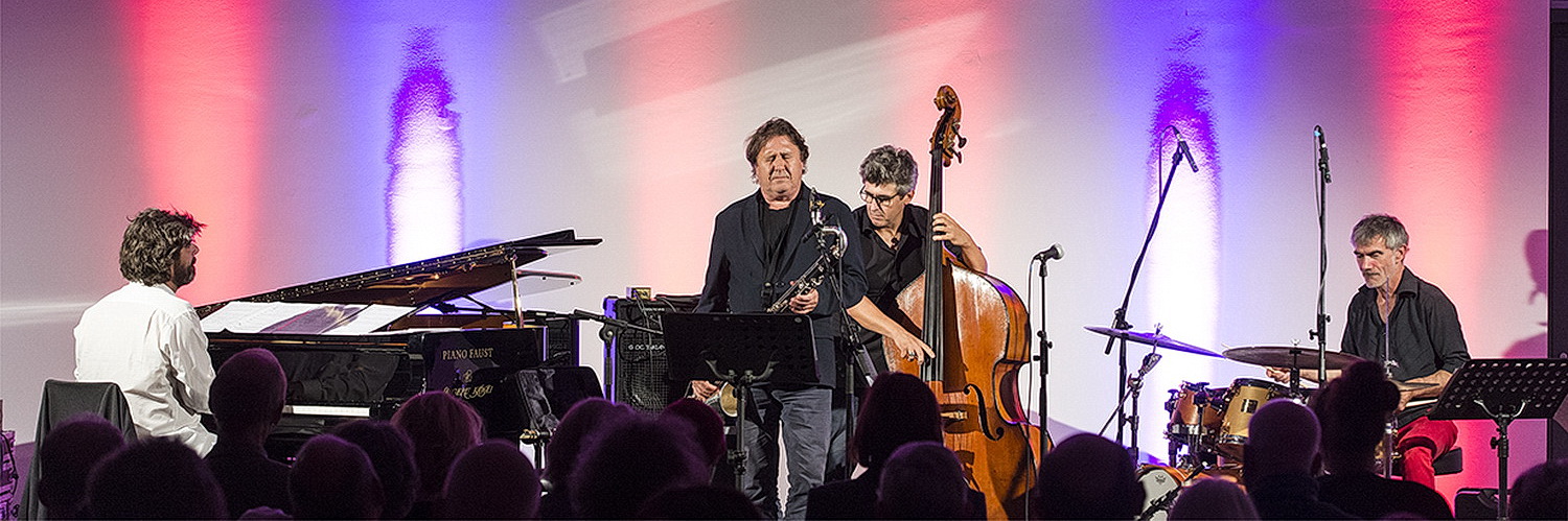 Dabei entlockt Sclavis Klari­nette und Basskla­ri­nette ein ungemein facet­ten­reiches Spektrum an Klang­farben. Mal ruhig-versonnen warm, dann wiederum eruptiv einher­gehend mit schrill-überbla­senen Tönen demons­triert er während seiner Soli vom weichen Pianissimo bis zum markigen Fortissimo seine große hochvir­tuose Klasse. Diesen hohen Quali­täten steht Pianist Benjamin Moussay in nichts nach. Beispiels­weise steigert er minima­lis­tische, über der gesamten Tastatur zart-getupfte Töne hin zu wiesel­flinken Tonketten und Akkord­kas­kaden. Frederic Chiffoleau geht sehr feinfühlig mit seinem Kontrabass um, kann aber auch meisterhaft aus den F‑Löchern groovig-pulsie­rende wie energisch-schnelle Töne hervor­zaubern. Und Chris­tophe Lavergne geht mit dem Drumset, abgesehen von einer kleinen Passage in seinem großen, hochbril­lanten Solo, nicht wie mit einem normalen Schlagzeug um. Für ihn ist es ein klang­volles Instrument, das für reiches Spektrum an sensibel-perkus­siven Geräu­schen und tönenden Stimmungs­bildern zuständig ist.