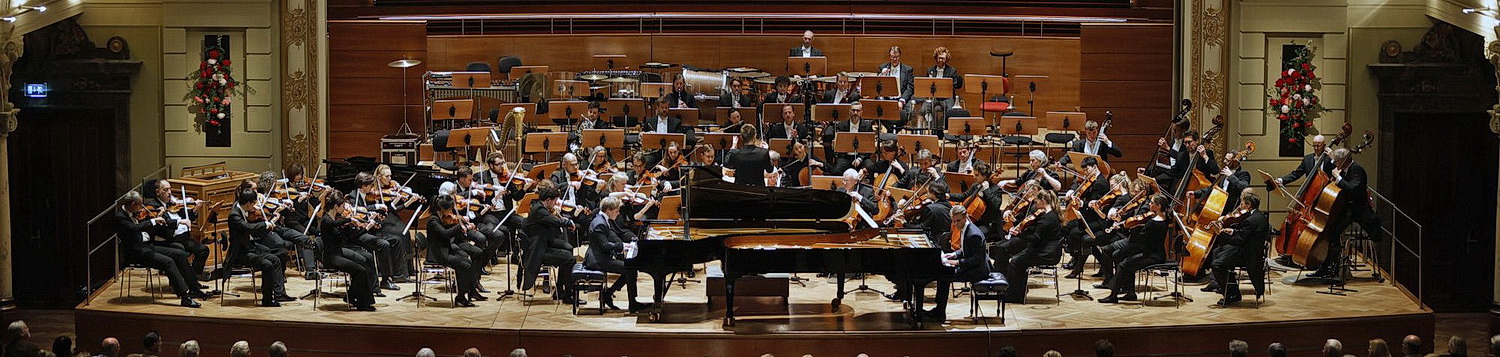 Doch leider lässt an diesem Abend beim Doppelkonzert die Musikalität der pianistischen Technik den Vortritt. Mendelssohn Bartholdy schuf dieses Werk im Alter von vierzehn Jahren für sich und seine Schwester Fanny, die wie er grandios mit dem Klavier umgehen konnte. Er schenkte es ihr höchstwahrscheinlich zum Geburtstag. Dreizehn Jahre nach seinem Tod wurde es noch einmal aufgeführt. Danach verschwand es für rund 100 Jahre in der Versenkung. Anfang der 1950-er Jahre kam dann im Rahmen von Bücherschmuggelgeschäften zwischen Ost- und Westberlin eine Mikrofilmaufnahme dieses und des anderen Doppelkonzerts nach New York. Seitdem wird das Werk wieder gerne gespielt. Vieles steckt in dem E‑Dur-Werk. Zum einen sind die Einflüsse von Johann Sebastian Bach, Wolfgang Amadeus Mozart, Ludwig van Beethoven, Carl Maria von Weber, Johann Nepomuk Hummel und Ignaz Moscheles unverkennbar. Dann ist es reich an melodischen Einfällen. Große tonsatztechnische Handwerkskunst wird außerdem deutlich wie verschachtelte Fugatos, mehrstimmige Engführungen oder sehr komplexe Verarbeitung von Themen. Auch die technische Brillanz ist gerade in den Ecksätzen bewusst hineinkomponiert. Sie steht bei dieser Aufführung weit mehr im Vordergrund als die anderen erwähnten Feinheiten. Auch der Kontrast zwischen den schwärmerischen Zügen des einen Klavierparts zu dem wesentlich zupackenderen Charakter des anderen im Binnensatz könnte deutlicher herausgearbeitet werden.