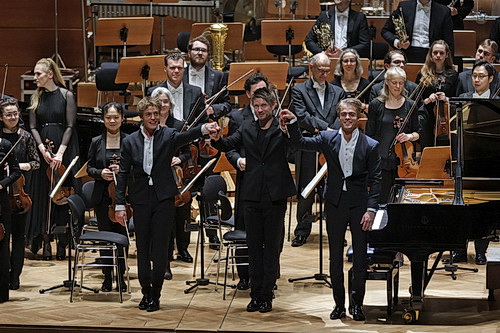 Die Brüder Lucas und Arthus Jussen aus den Niederlanden – geboren am 27. Februar 1993 und 28. September 1996 – werden trotz oder wegen ihres recht jungen Alters allerorts qua ihrer pianistischen Qualitäten hochgejubelt. „Es ist, als würde man zwei BMW gleichzeitig fahren“, sagt Dirigent Michael Schønwandt über die beiden. Deswegen sorgen sie im Konzertleben für Furore. Überall werden sie herumgereicht. So kommt das Duo mittlerweile zum fünften Mal zum Klavier-Festival Ruhr, in diesem Zusammenhang zum zweiten Mal nach Wuppertal in den bis auf wenige Sitze ausverkauften Großen Saal der Historischen Stadthalle.