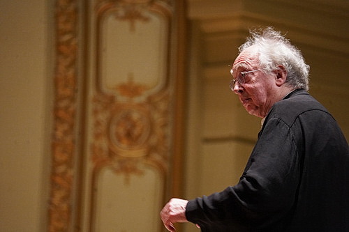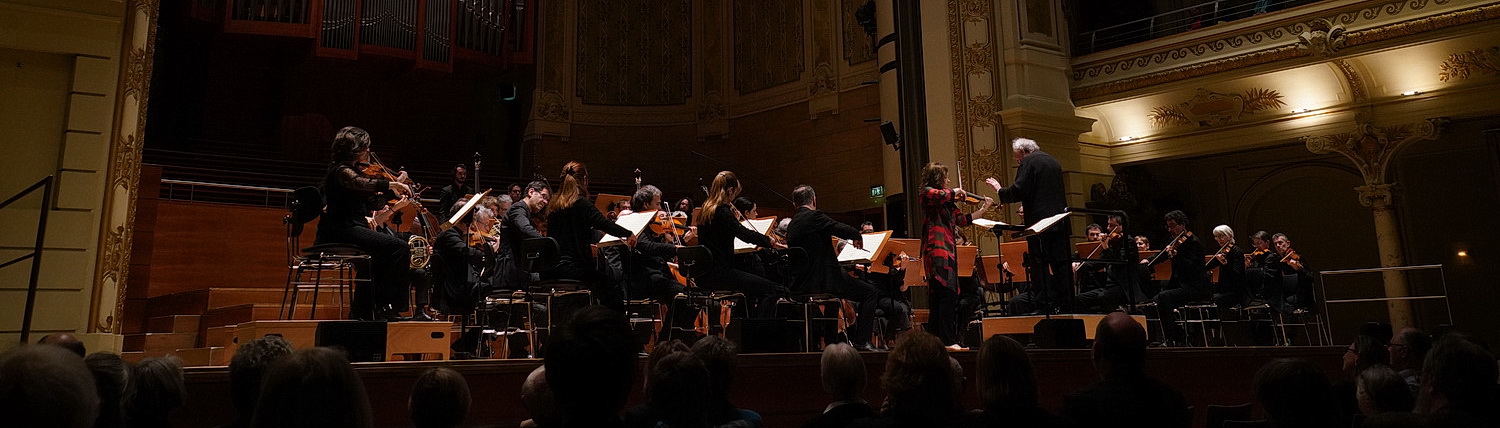 Ohne eigene Akzente zu setzen, wird sie akkurat vom Orchestre des Champs-Élysées begleitet. Bei Schumanns zuvor gespielter Ouvertüre in d‑Moll zu Szenen aus Goethes Faust traut man seinen Ohren nicht ob der manchmal nervösen Bogenführung der ersten Geigengruppe, die so eine harmonischen Gesamtklang vermissen lässt. Auch an den musikalischen Gegensätzen, die die literarische Person widerspiegeln, kann man noch deutlich vernehmbarer feilen. Das Orchester ist bekanntlich spezialisiert auf die historische Aufführungspraxis, spielt auf Instrumenten der jeweiligen Musikepoche, in diesem Fall der Romantik. Diese Tongebung kommt heute Abend auch vollends zur Geltung. Nur wirkt die Spielweise der erstklassigen Sinfoniker blass, uninspiriert. Vielleicht liegt das Manko auch an Philippe Herreweghe, der ein paar Tage zuvor 77 Jahre alt geworden ist. Denn mit nur sehr spärlichen Hand- und Armbewegungen und zu wenig Gestaltungswillen lotst er am Dirigentenpult durch die Partituren. So kommt abschließend die dritte Sinfonie von Johannes Brahms zwar sauber gespielt, doch wenig aussagekräftig, zu antriebs‑, kraft- und lieblos von der Bühne.