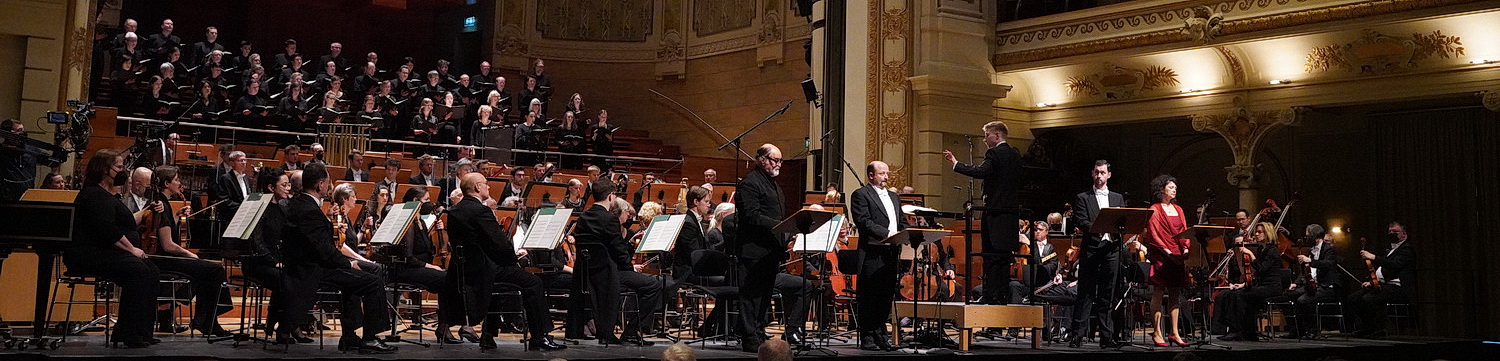 Das Programm des dritten Wuppertaler Chorkonzerts stand schon lange fest. Obwohl es sich um Werke sowjetischer Komponisten handelt, bleibt es dabei trotz – oder gerade wegen – des von Russland angezettelten Kriegs gegen die Ukraine. Denn nicht ganz Russland ist schuld an dem großen Drama in Osteuropa, sondern vor allem sein Präsident Wladimir Putin. Vor der Veranstaltung verurteilt Generalmusikdirektor Patrick Hahn auch im Namen der Wuppertaler Bühnen deutlich diese seit rund zwei Monaten existierenden Gräueltaten und bezieht klar Stellung pro Ukraine. Aus Solidarität zu dem Land spielt dementsprechend als Einleitung zu dem eindrucksvollen Abend das Sinfonieorchester Wuppertal unter seiner Leitung eine Orchesterfassung der Hymne Gebet für die Ukraine von Mykola Lysenko aus dem Jahr 1885 sehr andächtig. Anschließend sind drei Raritäten aus dem letzten Jahrhundert im Großen Saal der Historischen Stadthalle Wuppertal zu erleben, die zu Unrecht nur sehr selten auf Konzertprogrammen stehen. Es gibt also für neugierige Freunde der sogenannten ernsten Musik, die keine Scheu vor Klängen jenseits von Dur und Moll haben, einiges zu entdecken.