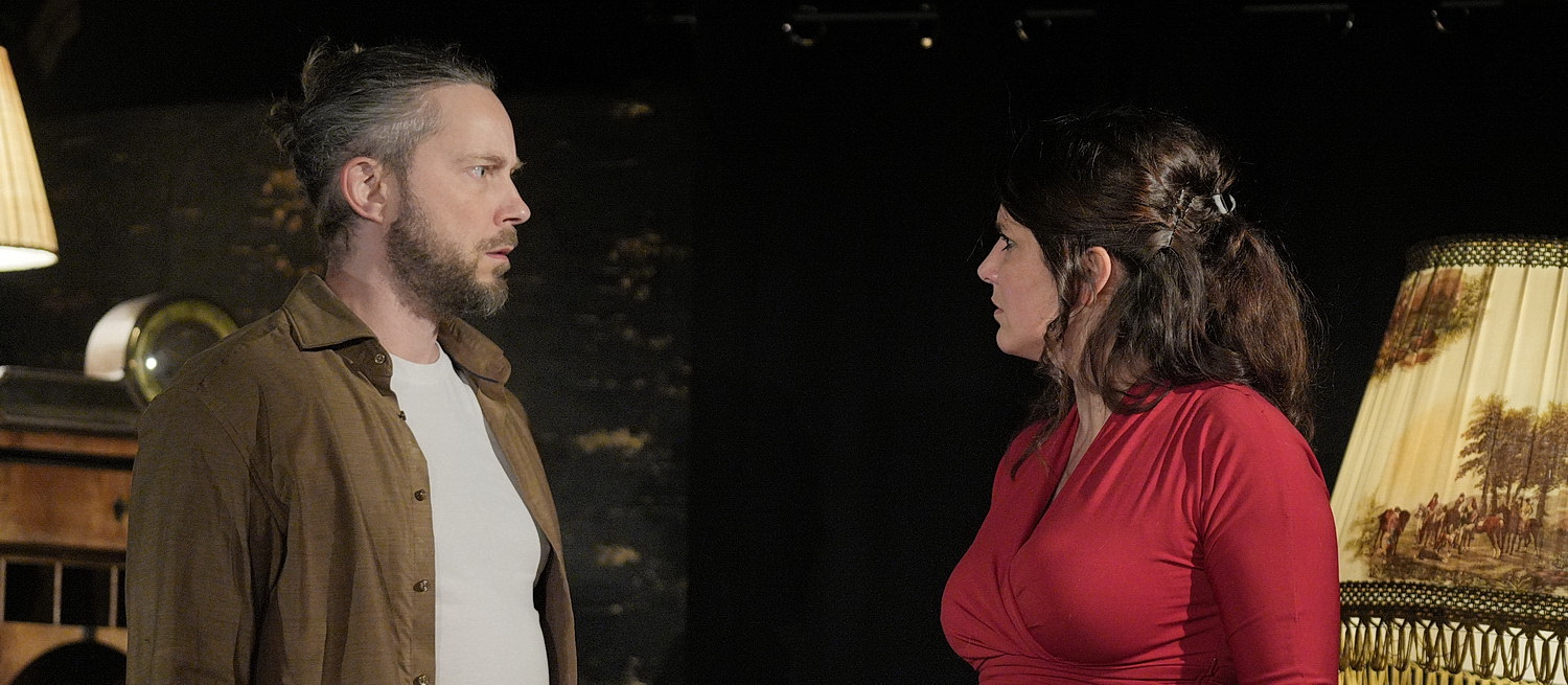 Dabei ist die Überraschung erst mal groß, wenn man den Schauspieler ansonsten als überaus professionell und souverän kennt. Der Typ da auf der Bühne turnt nervös herum, holt sich unmotiviert permanent Getränke, wird mitunter geradezu hysterisch in der Stimme. Das ist nun wirklich nicht der Köhler, den man als Darsteller schätzt. Aber merke: Hier ist nichts so, wie es scheint, also auch die Hauptfigur nicht. Erst rückblickend wird man verstehen, welchen großartigen Auftritt Köhler hier eigentlich hinlegt. Ganz anders Mona Köhler als Anna Spiegel im blutroten Gewand, die die Handlung überzeugend zu beherrschen scheint. Selbst Nils Findling wirkt glaubhafter als Bürgermeister Halberstaedt, der sich ständig um das Wohlergehen Larenz‘ sorgt. Und doch ist gerade er es, der für die größte Schwäche des Abends sorgt, wenn er in trockener Kleidung aus dem Sturm kommt, der über die Insel fegt. Da hätte ein Eimer Wasser hinter der Bühne für Glaubwürdigkeit sorgen können, den man ihm über den Parka geschüttet hätte.
