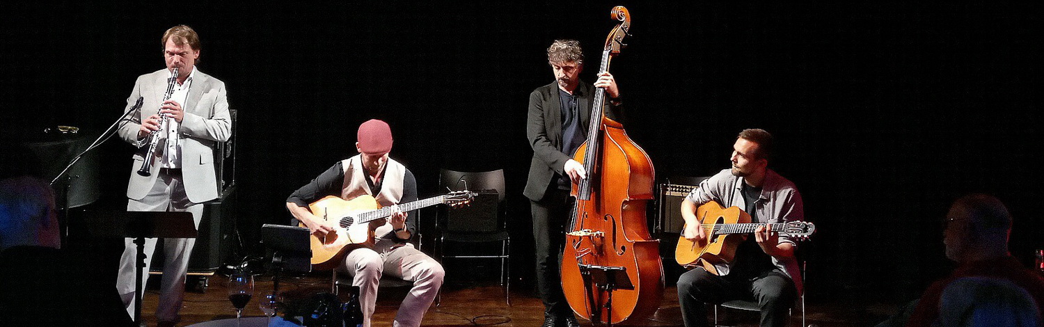 Es war die Ära des Swing, der Ende des Ersten Weltkriegs in den USA entstand und in der vierten Dekade des letzten Jahrhunderts zu einem Massenphänomen wurde. Parallel und passend dazu entstanden viele Tanzstile wie der Charleston, Shag oder Cakewalk. Die Big Bands und Tanzlokale waren richtig hip. Benny Goodman, Duke Ellington oder Glenn Miller sind nach wie vor Ikonen des Swing. Ende der 1920-er Jahre schwappte der Jazzstil über den Großen Teich nach Frankreich. Er entwickelte sich als Variante, Gypsy-Jazz, auch Jazz Manouche oder Sinti-Jazz genannt. Los ging es mit den Brüdern Pierre Joseph „Baro“, Sarane und Jean „Matelo“ Ferret, die den französischen Gesellschaftstanz Valse Musette mit Swingartikulation zu spielen begannen. Berühmtester Vertreter dieser Richtung ist der französische Gitarrist, Komponist und Bandleader Django Reinhardt, der von 1910 bis 1953 lebte.