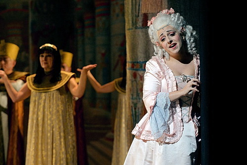 Die prachtvollen Dekorationen und Kostüme von Friedrich Eggert, die von der Mozart-Perücke bis zum altägyptischen Rauschebart und modernen Teenager-Outfit quer durch alle Epochen und Stile wirbeln, sind nett anzusehen, wirken aber ebenso willkürlich und orientierungslos wie die Regie. Bedenklich, dass offenbar nicht einmal das Libretto intensiv gelesen wurde, wenn unterschlagen wird, dass Monostatos‘ Bastonade durch den Gnadenakt Sarastros ausgesetzt wird. Dafür unterwirft man sich der political correctness und transformiert den „Mohren“ Monostatos zum weißen Sklaven und bringt gleich das Libretto auf Linie, wenn nicht mehr „ein Schwarzer so hässlich ist“, sondern ein „Sklave“. Da bietet die Opern- und Theaterlandschaft den verbalen Moralhütern dankbare Aufgaben, um nicht nur den Othello gesellschaftsfähig umzumodeln.