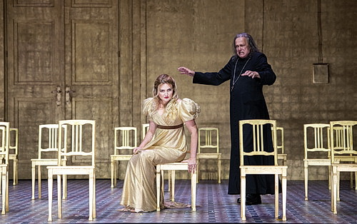 Volle steht ein ebenbürtiges Solistenensemble zur Seite. Brindley Sherratt als Pimen dröhnt mit einem markerschütternden Keller-Bass und überzeugt ebenso mit charakterstarkem Spiel. Schöne Stimmen dominieren auch den Polen-Akt. Oksana Volkova betört mit ihrem knisternden Mezzosopran als feurige Polin Marina, und Johannes Martin Kränzle intrigiert als durchtriebener Jesuit Rangoni mit feiner Klinge und sonorem Bariton. Edgaras Montvidas setzt als falscher Dimitri stimmlich und darstellerisch eindrückliche Akzente. Sein heller Tenor ist facettenreich und mit lichten Farben durchwoben.