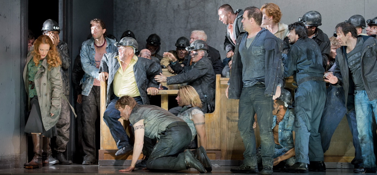 Giacomo Puccini schrieb sein Opus vor mehr als 100 Jahren als eine Hommage an das geliebte Gastland Amerika. Dem Komponisten gelang mit der spanungsgeladenen Geschichte eine veritable Vorläuferversion des guten alten Kinowesterns. Dass Kosky bewusst auf schnittige Stetsons und schummrige Saloon-Romantik verzichtet, ist ein genialer Regieeinfall. Mit der tristen Umgebung einer Bergarbeiter-Siedlung schafft er den passenden Rahmen für packendes Schauspiel. Die Protagonisten erhalten im minimalistisch gestalteten Bühnenbild von Rufus Didwiszus die Möglichkeit, die Zerrissenheit ihrer Charaktere authentisch auf den Punkt zu bringen.