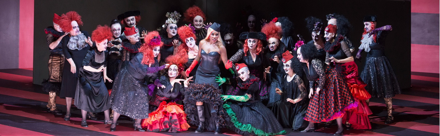 Giuseppe Verdis La forza del destino wurde 1862 in St. Petersburg uraufgeführt, Zürich spielt die zweite Fassung, die erstmals 1869 an der Scala gezeigt wurde. Fabio Luisi schöpft mit der Philharmonia Zürich aus dem Vollen und sorgt als Italienopern-Kenner für Feuer und Strahlkraft. Dank seines differenzierten Dirigats, das mit gut tarierten Pausen punktet, gerinnt die schwarze Tinte der Partitur nie zur zähflüssigen Lava. Bedrohlich steigt Verdis Leitmotiv am Anfang aus dem Orchestergraben, und Luisi hält diesen dunkel gefärbten Grundton souverän aufrecht, ohne dabei die buffonesken Abschnitte mit ihren schrillen Flötenpassagen und hoch schwingenden Streichern zu vernachlässigen. Ebenso präzise wie nuanciert bringt Janko Kastelic den Chor der Oper Zürich, Chorzuzüger, Zusatzchor sowie SoprAlti der Oper Zürich stimmlich auf die Zielgerade. Gerne vergisst man bei so viel musikalischer Opulenz wie Raffinesse die bunten Fratzen und schroffen Wände.