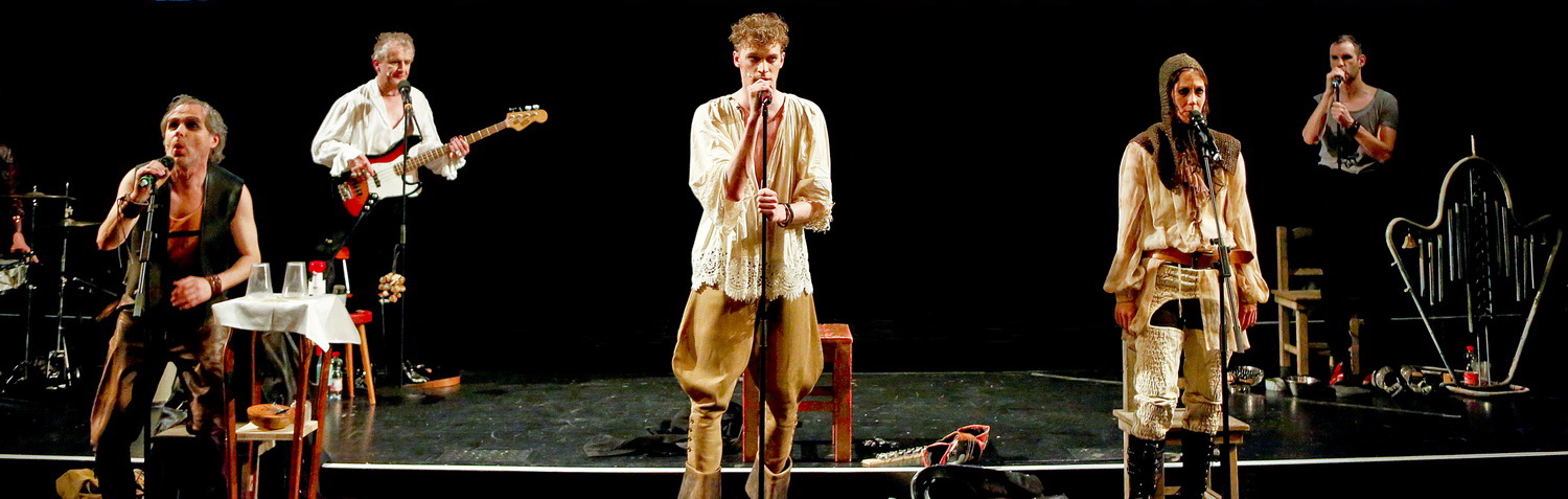 Ein Welttheater im barocken Sinn kommt natürlich nicht ohne Musik aus. Komponist Anton Berman und sein Mitstreiter Nico Stallmann sind mit ihrem vielfältigen Instrumentarium ständig präsent, wobei auch die Schauspieler gelegentlich musikalische Aufgaben übernehmen. Nicht nur singend wie etwa Janna Horstmann oder Anja Schweitzer, sondern auch instrumental. Berman hat einige schlichte Songs eingefügt und begnügt sich ansonsten mit Klängen, die die Szene meist hintergründig und ein wenig unheilschwanger einfärben. Das zeugt von gutem Handwerk und viel Respekt vor der Szene, setzt aber wenig eigene oder markante Akzente.