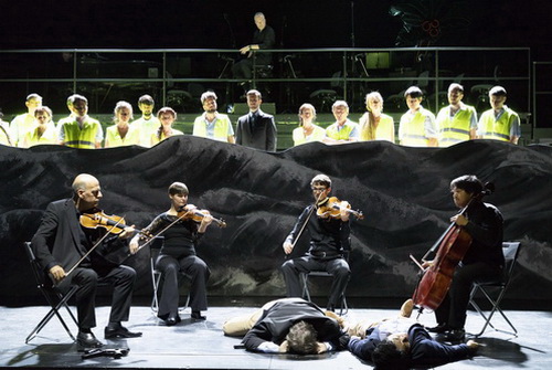 Zeitgenössische Musik mit Video-Techniken und theatralischen Elementen.