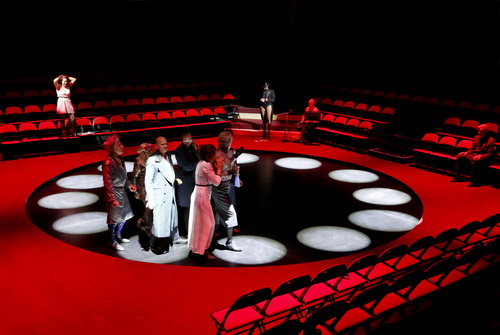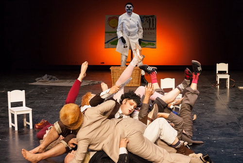 Frank Hoffmann versammelt zum Abschied noch einmal das gesamte Ensemble um sich.