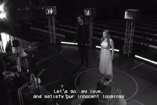 Die Inszenierung zeigt das Bild einer Gesellschaft, die in Ritualen und Hierarchien nach Halt sucht.