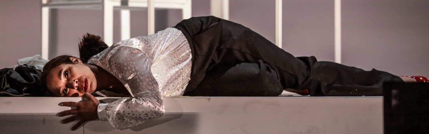 Erst nach der Pause nimmt das Stück wieder Tempo auf und gewinnt vor allem durch den darstellerischen und stimmlichen Einsatz von Marisol Montalvo an Spannung. Hier zeigt die Sopranistin ihr wachsendes Stimmvermögen und die mehrfach gelobte „bedingungslose Identifikation“ und Leidenschaft mit ihren Figuren. Auch die übrigen Rollen, häufig in Mehrfachrollen, sind bestens ausgestattet, wobei Sayaka Shigeshima, Alt, als Gräfin Geschwitz und Anna Harvey, Mezzosopran, als Gymnasiast und Groom herausragen. Günter Moderegger, Bass, hat weitgehend Sprechanteile zu präsentieren, dem Tierbändiger und Direktor gibt Damon Nestor Ploumis ein herrlich darstellerisches und stimmliches Gewicht, Björn Waag überzeugt als Dr. Schön.