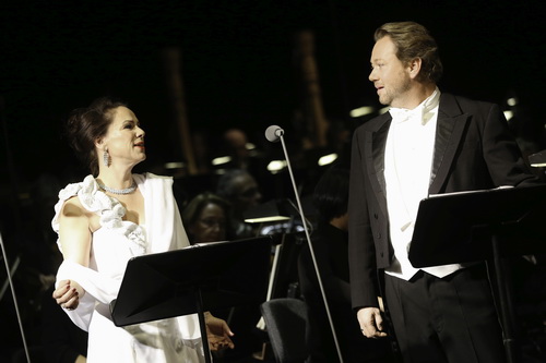 Es ist äußert bewundernswert, dass es sich die Volksoper antut, diese Rarität, die eigentlich schon unter der Kategorie vergessene Opern einzuordnen ist, aufzuführen, denn der Aufwand für nur drei geplante Aufführungen ist beträchtlich. Man verzichtet jedoch auf eine szenische Umsetzung und spielt das Werk, das der Komponist für eines seiner liebsten hielt, nur konzertant. Und das hat gute Gründe, denn die Handlung ist ziemlich kraus und eigentlich kaum zu inszenieren: In einem lieb- und freudlosen Reich, wo glückliche Emotionen verboten sind und sogar bestraft werden, wird ein beim Volk beliebter Fremder, ein Prophet, der Freude und Liebe verspricht, genau deshalb zum Tode verurteilt. Der despotische Herrscher, ein König, verspricht diesem Sozialrevolutionär Begnadigung, wenn er ihm hilft, das Herz und die sexuelle Liebe seiner Frau, mit der der König noch nie vereint war, zu erringen. Der lehnt ab, weil gerade vorher die Königin Heliane beim Fremden war, sie beide in Liebe entflammt sind und sie sich ihm sogar in keuscher Nacktheit offenbart hat. Das erfährt der Herrscher jedoch erst später. In ihrer großen, der einzigen wirklichen Arie des gesamten Werks, gesteht sie diese Liebe dem König und den Richtern. Der König zwingt Heliane zu einem Gottesurteil: Wenn sie den Fremden, der sich, um sie zu schützen, gerade erdolcht hat, von den Toten erwecken könne, sei sie unschuldig und werde freigelassen. Überraschenderweise funktioniert das und beide schweben zum Finale gen Himmel empor. Nur die Liebe ist die Ewigkeit: So lautet die Botschaft dieser Oper. Ziemlich rührselig also! Schon allein diese Szene würde auch heutige Regisseure inszenatorisch vor große Herausforderungen stellen.