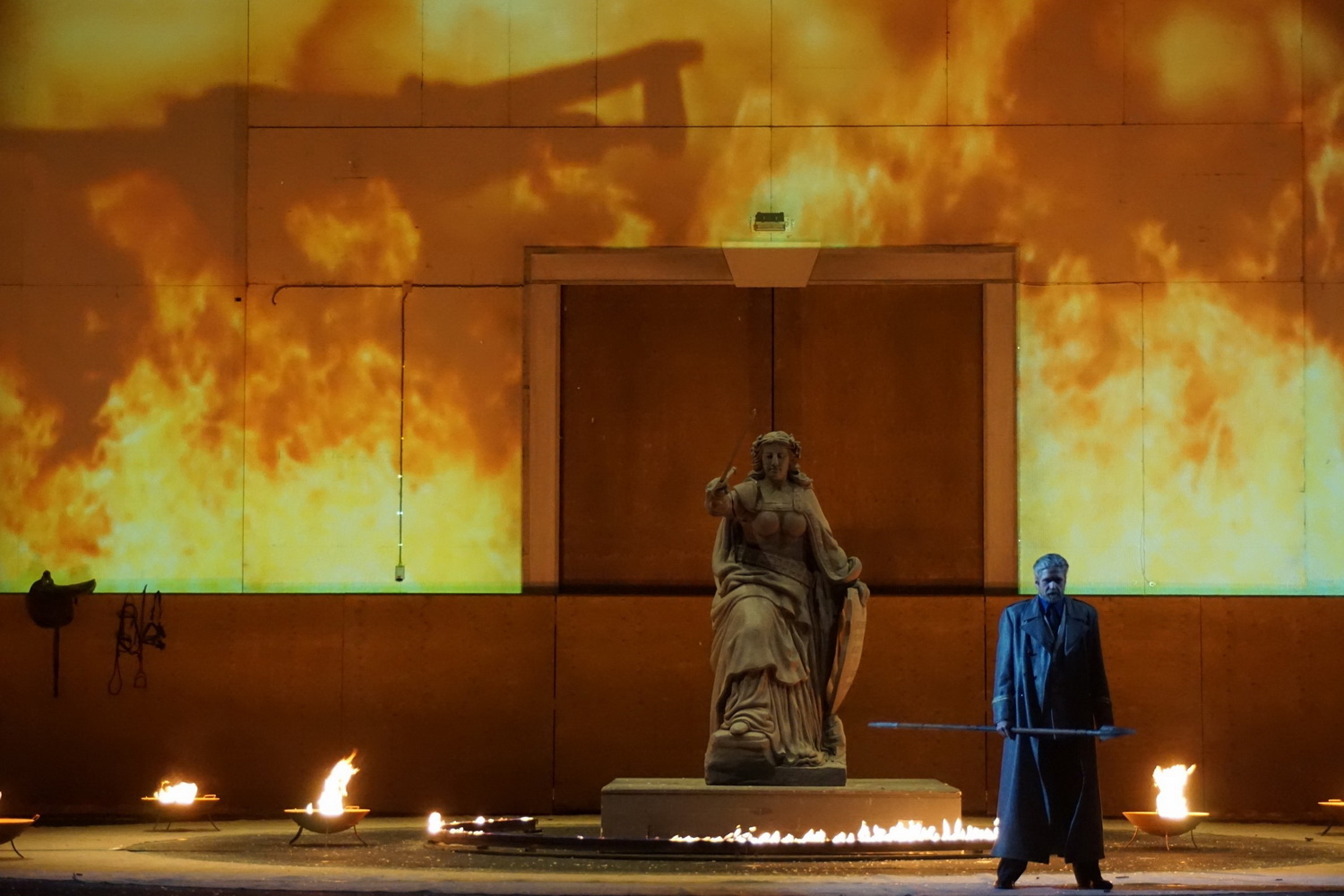 Vage bis befremdlich hingegen etliche andere Bilder dieser Inszenierung. Ja, richtig, Sieglinde träumt im zweiten Aufzug vor der Ermordung Siegmunds von Angstszenen ihrer Kindheit. Auch richtig, Sieglinde, für Wotan bloß Mittel zum Zweck, ist Opfer einer Vergewaltigung, bevor sie mit dem Finsterling Hundig verbandelt wird. Doch warum muss Laufenberg eine neuerliche Vergewaltigung Sieglindes durch die Soldateska auf der rohen Tischfläche so zeigen, als würde sie just in time geschehen? Das ist weder mit Wagners Text kompatibel noch verständlich, gar nötig. Warum, ein weiteres Beispiel, wird Brünnhilde zu den Sphärenklängen des Feuerzauber-Motivs in eine Art Germania-Statue eingeschlossen? Eine Anspielung auf die Renationalisierungstendenzen heute, die Symbolwelt der neuen Rechten?