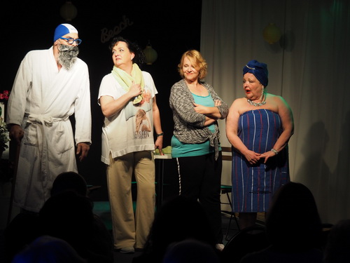 Für die Besucherinnen, die ihre Mütter – und Ehemänner – mitgebracht haben, ist so mancher Schenkelklopfer dabei. Von den Müttern ist dann in der Pause so mancher nachdenkliche Spruch zu hören. Bei viel – überflüssigem – Zwischenapplaus werden die Protagonisten am glücklichen Ende zu Recht gefeiert. Und wie es schöne Sitte im Theater im Tanzhaus ist, stehen sie nach der Aufführung am Ausgang, um Kritik und Lob entgegenzunehmen. Heute Abend wird es eine Lobeshymne, weil diese „ganz normalen Frauen“ so viel Lebensfreude versprüht haben. Bei jedwedem Zweifel an der Lebensfreude im fortschreitenden Alter sei der Besuch dieser Produktion trotz der platten Dialoge dringend empfohlen. Diese Frauen werden es Ihnen zeigen.