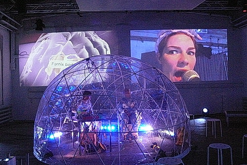 Theaterzelt Circa zeigt die Aufhebung der Schwerkraft und sorgt für die Stimmung einer Fußballarena.