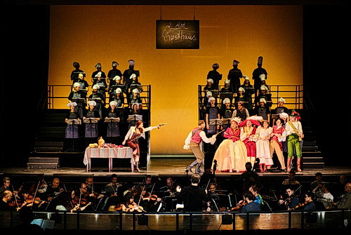 Berlin Diskussionswürdige Inszenierung, die sich auf Witzeleien kapriziert. Feinheiten der Musik bleiben außer Acht.