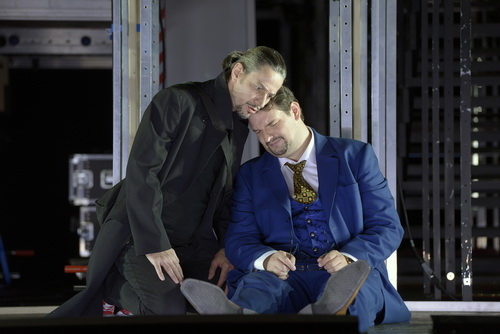 Der stärkste Moment gehört gleichzeitig dem musikalischen Gewinner der Aufführung. Zum Autodafé stellt Biganzoli nur den Chor auf die Bühne. Wie sie mit Smartphones bewaffnet dem Event beiwohnen, auf die Geschehnisse reagieren, die das Publikum nicht sieht, das ist Theater in der höchsten Kunst. Das Publikum hört nur die Worte der Sänger, die irgendwo im Rang stehen. Die Masse gafft und schreit, zeigt plötzlich Mitleid mit den Ketzern – ein paar Fundamentalisten mal ausgenommen, das sind vier finstere Chorbässe. Dann greift der Prinz zum Schwert, entsetzt reagiert die Masse. Der König wird angegriffen, alles hält den Atem an – das Publikum und auch das echte Publikum. Dann hört man endlich wie eine Befreiung Posa rufen: „Gib mir den Degen“. Aufatmen bei allen Beteiligten und man kehrt schnell zur Tagesordnung zurück. Hagen Enkes Chöre meistern diese Szene, und nicht nur diese, in jeder Hinsicht mit Bravour. So schön differenzierend, so ausgeglichen hört man Verdis Musik etwas zu selten.