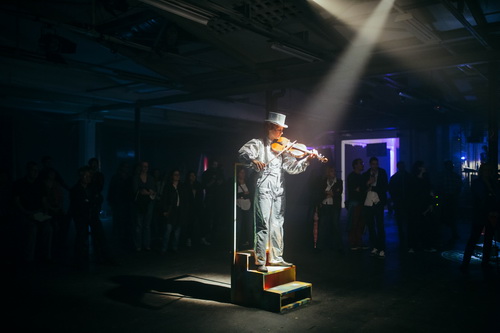 Die zeitgenössische Komposition, vor der offenbar auch an diesem Abend viele zurückgeschreckt sind – in der Halle wäre noch viel Platz gewesen – erweist sich als eingängig, ohne sich anzubiedern. Auch hier mischen sich Zirkusmusik, Alte Musik und Gegenwartsexperimente. Großartig die Idee, Metallscheiben in Kochtöpfen zu erhitzen und die daraus entstehenden Geräusche in die Ouvertüre einzubauen. Der Komponist selbst spielt die Posaune, Schellenbaum und Percussions, Bernd Bolsinger bearbeitet Klarinette und Piccolo-Flöte und Christine Hanl begeistert zudem mit schauspielerischen Elementen an der Viola und Schlaginstrumenten.