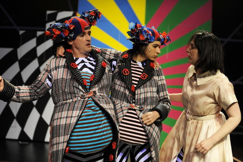 Am Ende sind es gerade mal vier Darsteller, die knapp 70 Minuten lang für einen Riesenzauber auf der Bühne sorgen und die meisten Kinder in ihren Bann ziehen. Und wenn manche Eltern ihren lieben Kleinen einfach mal pädagogisch wertlos sagten, dass sie jetzt die Klappe zu halten hätten, hätte es vermutlich noch mehr Kindern gefallen. Die Schauspieler lassen sich vom „Wer ist das denn jetzt?“ und „Kann ich noch’n Keks haben. Ich hab‘ wirklich Hunger.“ nicht beeindrucken, sondern spielen für die übrigen Kinder mit einer schier unglaublichen Intensität. Julia Goldberg zeigt genau die gewünschte Alice, dieses ungläubig staunende Mädchen, das sich letztlich unbekümmert aller Gefahren für das Richtige einsetzt, mit entzückender Glaubwürdigkeit. Julia Dillmann gefällt unter anderem als Knallhase, der witzig und naiv ist, ohne albern zu werden. Schade, dass Maëlle Giovanetti ihren herrlich unverständlichen Dialekt als Hutmacher, hier Mädhättä, nach der Schlüsselszene aufgibt: Es heißt doch Alice oder nichts. Und wenn es nichts nicht gibt, müssen wir Alice finden. Aber bei sechs überzeugend gespielten Rollen sieht man ihr das gerne nach, zumal gar nicht sicher ist, ob hier die Regie nicht sauber gearbeitet hat.