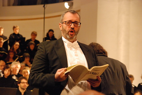 Dazu tragen insbesondere die vier Solisten bei. Herausragend Countertenor Alex Potter, der in wunderbarer Phrasierung seine Stimme zum eigenen Instrument entwickelt. Tenor Markus Brutscher braucht kurzen Anlauf, ehe er das Publikum mit dramatischem Impetus fesselt. Rolf A. Scheiders Bass-Bariton füllt mühelos den Kirchenraum. Und Theresa Nelles, die als Spezialistin für Kirchenmusik gilt, beweist ihr Können mit auch in der Höhe verständlichen Texten.