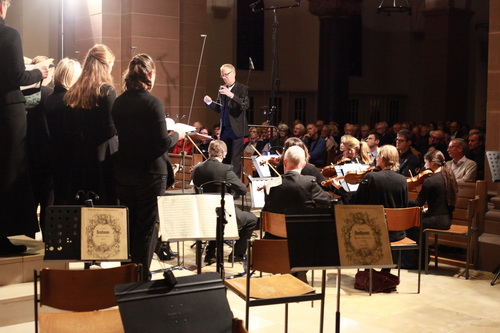 Die Missa solemnis von Ludwig van Beethoven gilt als eines der anspruchsvollsten Werke der Choralmusik. Entsprechend wird der Chor auf seine volle Mitgliederzahl verstärkt und nach hinten in den Altarraum gerückt. Im Vordergrund hat das Orchester entsprechend der Vorgaben aufgerüstet. Die Kunst der Aufführung liegt in der Balance zwischen einem feinen Violinensolo und dem Aufbrausen zur Verherrlichung eines Gottes.
