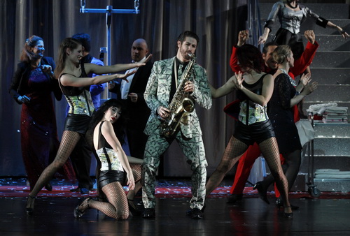 An den grandiosen Erfolg von Samuel Barbers Vanessa im letzten Jahr kann diese Produktion nicht nahtlos anknüpfen. Einzuordnen ist es in die verdienstvollen Bemühungen der Hagener Bühnen um das amerikanische Musiktheater. Jonny spielt auf ist zwar in Deutschland entstanden und spielt im europäischen Milieu zwischen Paris und den Alpen, doch thematisiert wird die Sehnsucht der 1920-er Jahre nach neuen Zeiten, die sich viele Zeitgenossen von der amerikanischen Kultur erhofften. Dass Krenek diesen Traum kritisch beäugte, zeigt sich an der Titelfigur Jonny, einem amerikanischen Jazzband-Geiger, der in Europa Karriere machen möchte, jedoch zunächst die kostbare Geige des berühmten Virtuosen Daniello stiehlt und sich am Ende aus dem Staub macht. Dass Krenek dessen Abgang auf den ersten Blick triumphal zelebriert, indem er ihn auf einer Weltkugel mit Jazzklängen die „Neue Zeit“ einläuten lässt, relativiert der Komponist durch die Kürze der Szene und die eher dünnen Jazz-Einwürfe. Große Hoffnung setzt er in Typen wie Jonny nicht.