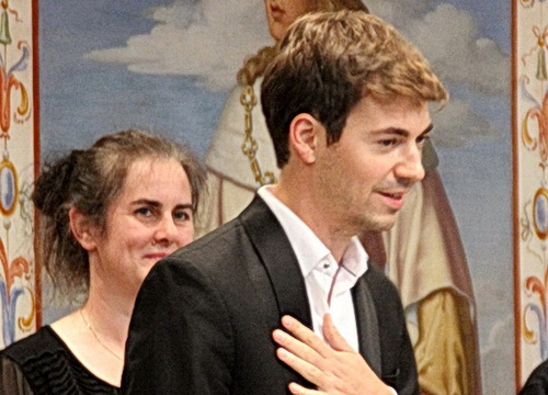 Ebenso professionell und wohl ausbalanciert musizieren sie mit dem Solisten Valer Sabadus. Der sympathische, bescheiden wirkende, junge Countertenor packt das Publikum mit seinem makellosen, aber außergewöhnlichen Gesang. Seine Stimme reicht tief in den Alt. Sie zeigt eine ausnehmende Breite, von der klaren Höhe bis in eine satte Tiefe, alles mit viel Wärme unterlegt. Nichts wirkt metallen oder hart. Mit jugendlicher Leichtigkeit gleitet Sabadus in die Höhe, intoniert präzise, setzt die Töne von oben an, öffnet auch mal schmachtend im Text vertieft seine Stimme und gießt wahrlich seine Arien in den Saal. Beeindruckend die Stimm-, aber auch seine Atemtechnik. Mühelos zieht er Stimmbögen in die Länge, setzt zu klaren Koloraturen an und dehnt am Ende seine Laute. Kaum merklich holt er Luft, und so wirkt sein Gesang schwerelos und ohne Brüche.