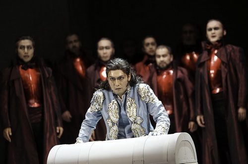 Auch der Herzog ist mit Yoonki Baek aus dem hauseigenen Ensemble besetzt. Er vermag den doppelgesichtigen Charakter der Figur durchgehend überzeugend zu verkörpern. Die hohen Anforderungen der Partie kann die Stimme weitgehend erfüllen, wenn auch nicht ganz ohne Anstrengung in den extremen Lagen.