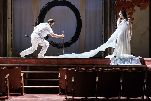 Und die Titelheldin? Ihre feinen Piani sind betörend, ihre dramatische Durchschlagskraft ist enorm, ihr Sopran ist nuancenreich und reich an Farben: Liana Aleksanyan ist eine großartige und ungemein berührende Cio-Cio-San. Die armenische Sängerin kann die gesamte Gefühlspalette der unglücklichen Geisha, ihre Naivität, Freude und Verzweiflung berührend vermitteln. Besonders ihre große Arie Un bel di vedremo – Eines Tages sehen wir – im zweiten Akt wird zum Ereignis. Leider muss die Premiere dieser populären Oper gleich danach wegen einer Bombendrohung abgebrochen werden.