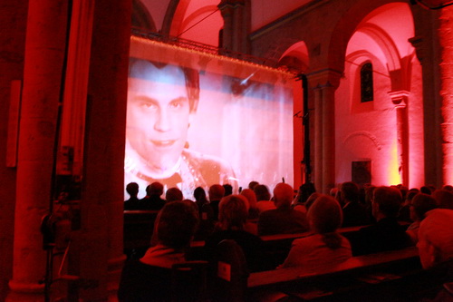 Die Videobotschaften auf der transparenten Leinwand, hinter der die vier Vokal- und drei Instrumentalsolisten sowie die Musiker des Instrumentalensembles la festa musicale schemenhaft erkennbar blieben, führen zur totalen Abdunkelung der Basilika. Da kann Moderator Thomas Höft vor der Aufführung mit Engelszungen das Interesse auf die Feinheiten des Librettos richten. Im Dunkeln kann man es nicht lesen und in der halligen Akustik des Kirchenraums auch nicht verstehen.